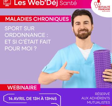 27février2026 Webinaire santé | Maladies chroniques - sport sur ordonnance : et si c'était fait pour moi ? Ce nouveau webinaire vous propose de découvrir les bienfaits du sport sur ordonnance, tant sur le plan physique sur sur le bien-être global. Voir plus